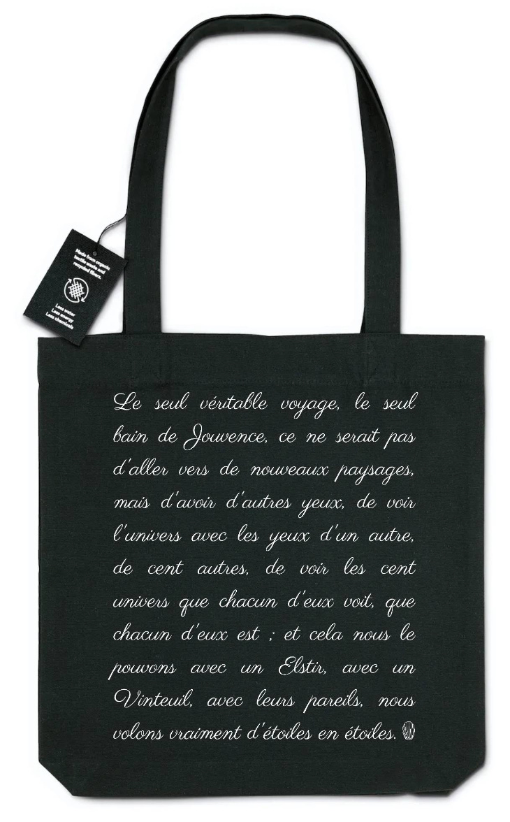 Le seul véritable voyage, le seul bain de Jouvence, ce ne serait pas d'aller vers de nouveaux paysages, mais d'avoir d'autres yeux, de voir l'univers avec les yeux d'un autre, de cent autres, de voir les cent univers que chacun d'eux voit, que chacun d'eux est ; et cela nous le pouvons avec un Elstir, avec un Vinteuil, avec leurs pareils, nous volons vraiment d'étoiles en étoiles.